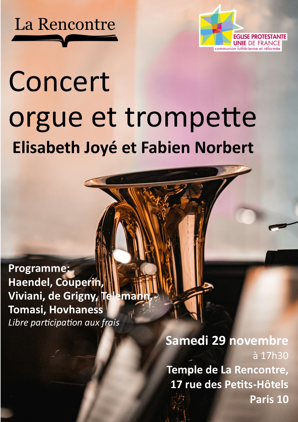 Concert exceptionnel d'orgue et de trompette avec Elisabeth Joyé et Fabien Norbert, avec au programme des œuvres d'Haendel, Couperin, de Grigny, Viviani, Telemann...